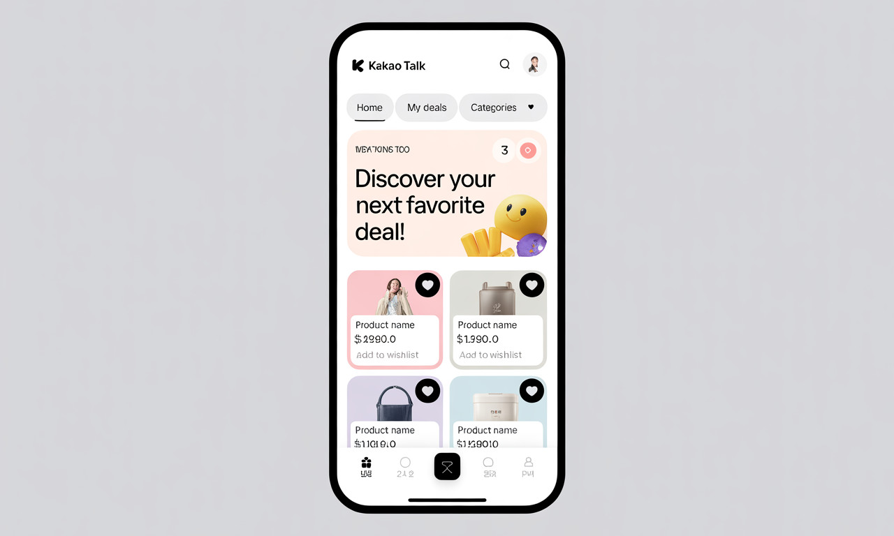 카카오 톡딜은 국내 최대 메신저 플랫폼인 카카오톡에 통합된 쇼핑 서비스로, 2019년 출시 이후 빠르게 성장하고 있는 이커머스 플랫폼입니다. 5,000만 명이 넘는 카카오톡 사용자 기반을 활용하여 일상 대화 공간에서 바로 쇼핑으로 연결되는 편리함을 제공하고 있습니다. 특히 MZ세대를 중심으로 높은 인기를 얻고 있으며, 카카오의 강력한 데이터 분석 기술을 바탕으로 개인 맞춤형 상품 추천 서비스를 제공하는 것이 큰 특징입니다.