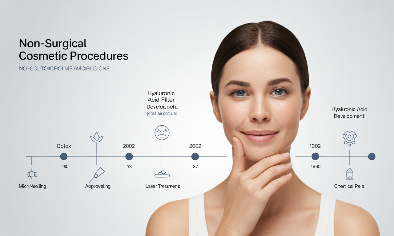 비수술 성형은 피부를 절개하지 않고 주사, 레이저, 초음파 등의 방법을 이용하여 미용 효과를 얻는 시술을 의미합니다. 현대적 의미의 비수술 성형은 20세기 후반부터 발전하기 시작했으며, 2002년 미국 FDA가 보톡스를 미용 목적으로 공식 승인하면서 본격적인 대중화가 시작되었습니다.