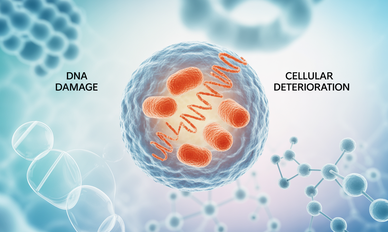 산화 스트레스는 또 다른 주요 노화 메커니즘입니다. 미토콘드리아에서 에너지를 생산하는 과정에서 활성산소종(ROS)이 생성되는데, 나이가 들수록 이 ROS의 생성이 약 30% 증가하는 것으로 알려져 있습니다. 활성산소는 세포 구성 요소에 손상을 입혀 기능 저하를 초래하며, 이는 노화 현상을 가속화합니다.