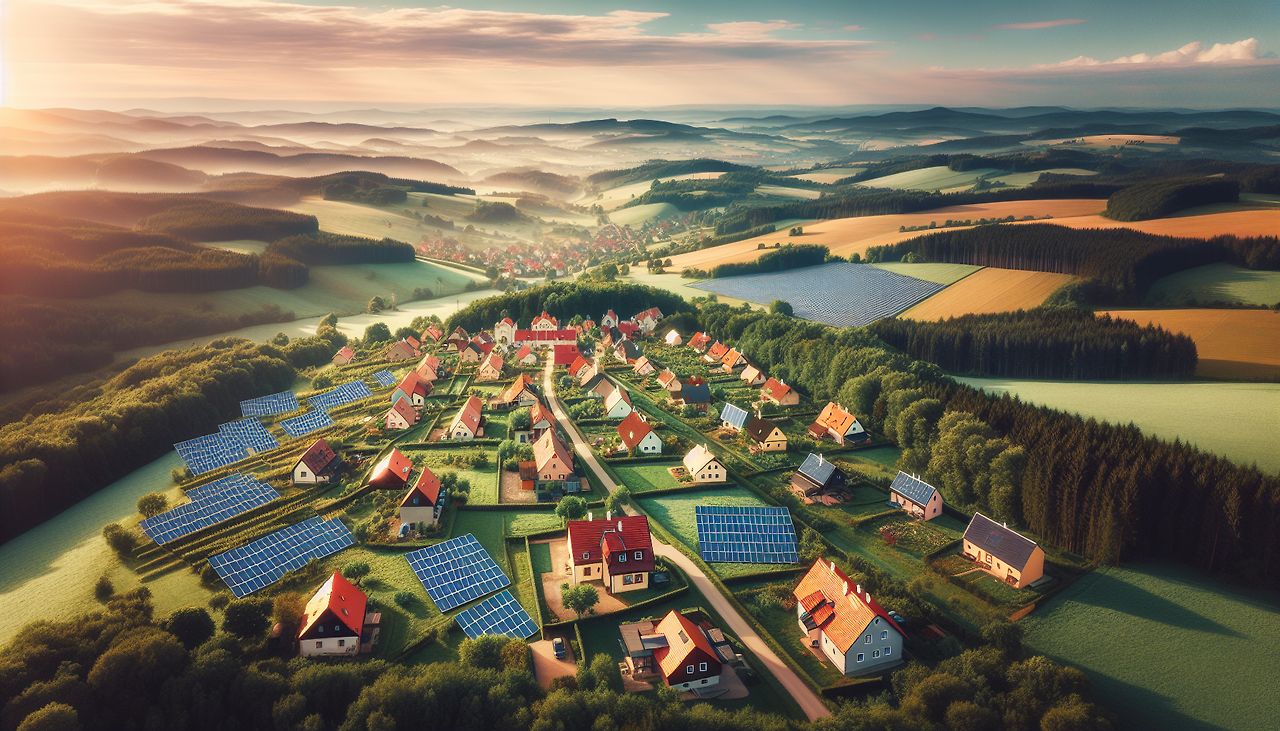체코 시골 지역에 설치된 태양광 패널은 지역 에너지 협동조합의 확산과 에너지 자립을 상징합니다.