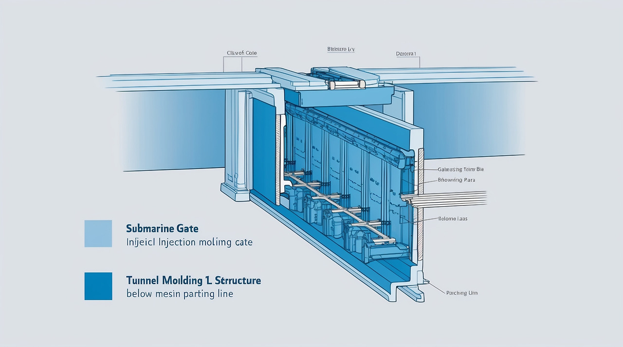 서브마린 게이트는 분리면 아래에 위치하여 터널 형태로 캐비티와 연결되는 특수한 구조를 가집니다. 용융 수지가 터널을 통해 캐비티로 유입되며, 제품 취출 시 게이트가 자동으로 분리되는 특징이 있습니다.