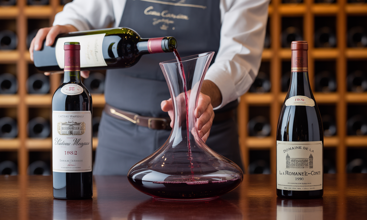 오래된 와인은 매우 섬세하며 과도한 산소 노출에 취약합니다. 따라서 서빙 직전에 천천히 디캔팅하는 것이 좋습니다. 일반적으로 30분 이내의 짧은 디캔팅 시간이 권장됩니다. 이는 침전물을 제거하면서도 와인의 섬세한 향미를 보존하기 위함입니다.
