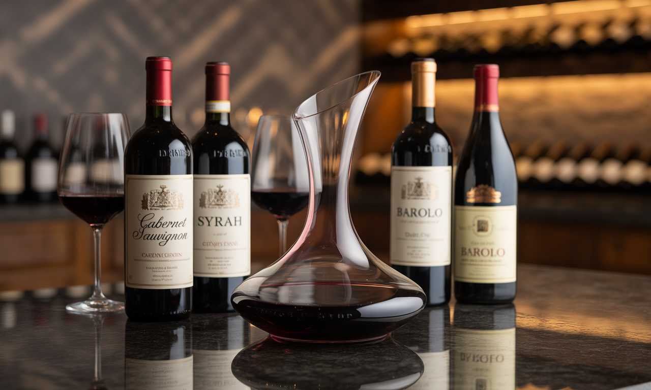 카베르네 소비뇽, 시라, 네비올로(바롤로, 바르바레스코), 템프라니요(리오하)와 같은 고탄닌 레드 와인은 디캔팅으로 가장 큰 혜택을 받습니다. 이러한 와인들은 강한 타닌 구조로 인해 젊었을 때 매우 수렴성이 강할 수 있으며, 디캔팅을 통해 타닌이 부드러워지고 풍미가 개방됩니다.