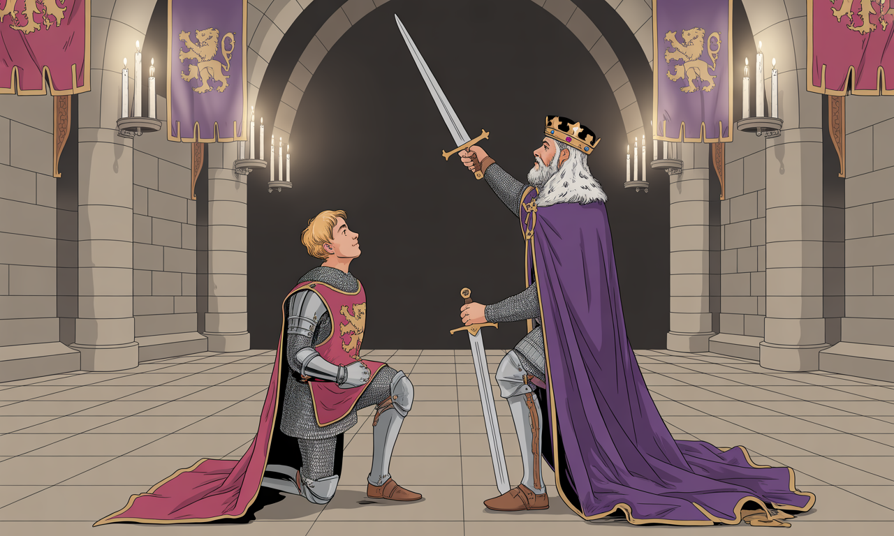 약 7년간의 시종 생활을 거친 후, 21세 전후로 기사 서임식(knighting ceremony)을 통해 정식 기사가 되었습니다. 서임식은 매우 엄숙하고 종교적인 의식이었습니다. 서임 전날 밤, 후보자는 교회에서 밤새 기도하며 금식하고 고해성사를 받았습니다. 서임식에서는 검, 방패, 박차 등 기사의 상징물을 수여받았으며, 기사도의 이상을 평생 준수할 것을 맹세했습니다. 의식의 핵심은 서임을 집행하는 사람(보통 국왕이나 고위 귀족)이 후보자의 어깨를 검으로 가볍게 치는 '어깨 타격(accolade)' 의식이었습니다. 이 순간부터 시종은 공식적으로 기사 계급에 편입되었습니다.