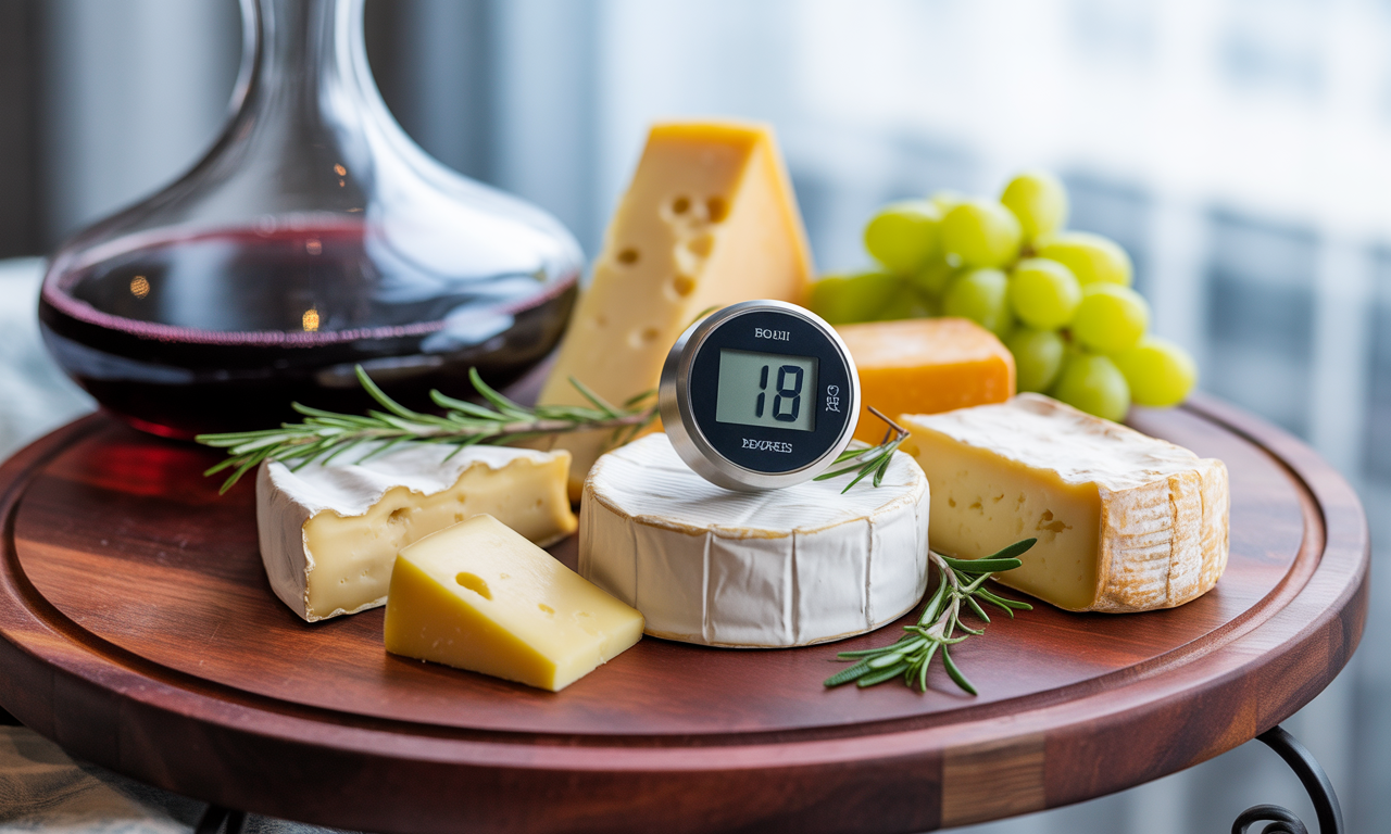 치즈는 냉장고에서 꺼낸 직후가 아닌 실온(18~20℃)에서 서빙할 때 풍미가 극대화됩니다. 와인 역시 종류에 따른 적정 온도(레드 와인 16~18℃, 화이트 와인 8~12℃)를 지켜 서빙하세요. 너무 차갑거나 따뜻한 온도는 와인과 치즈 모두의 맛과 향을 제대로 표현하지 못합니다.