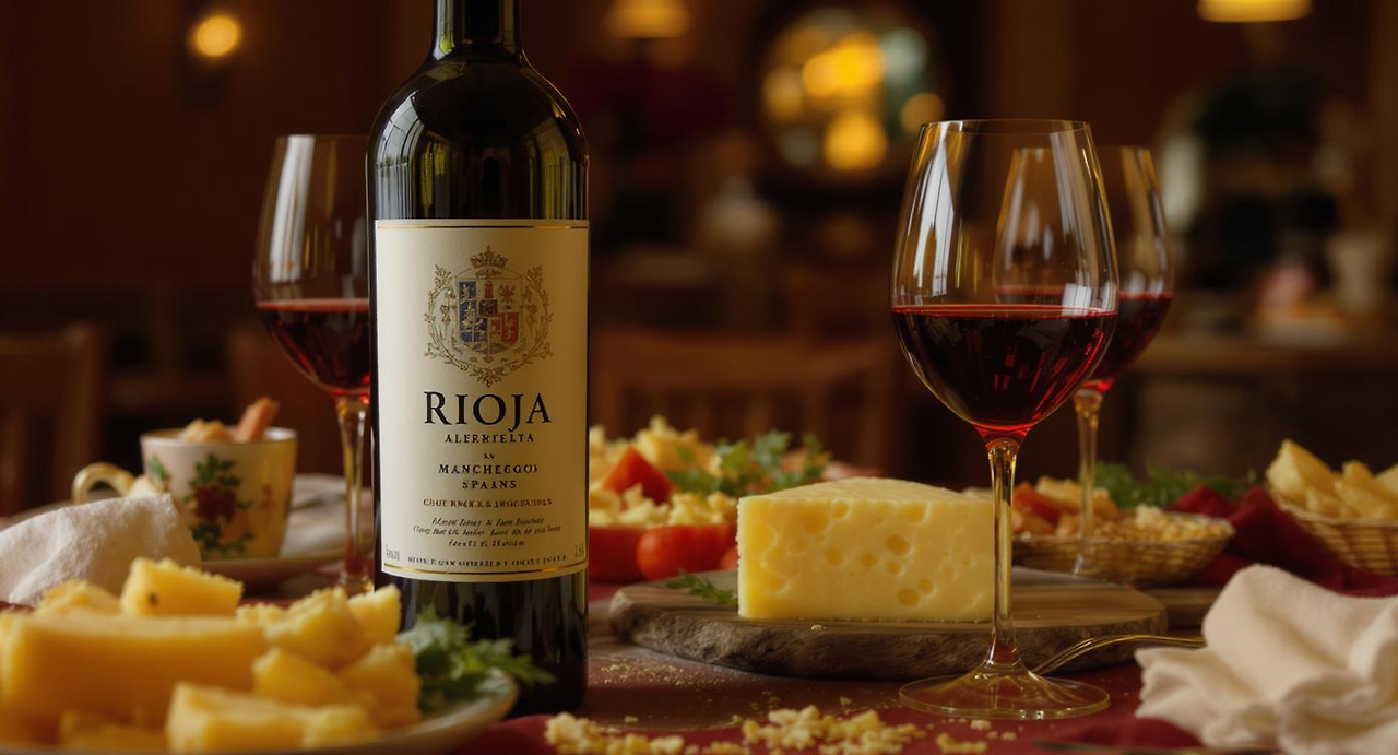 스페인 리오하(Rioja) 지역의 템프라니요 기반 와인은 같은 지역의 전통 양젖 치즈인 만체고(Manchego)와 전통적인 페어링으로 인정받고 있습니다. 와인의 오크향과 베리 풍미가 치즈의 고소하고 견과류 같은 맛과 완벽하게 어우러집니다.