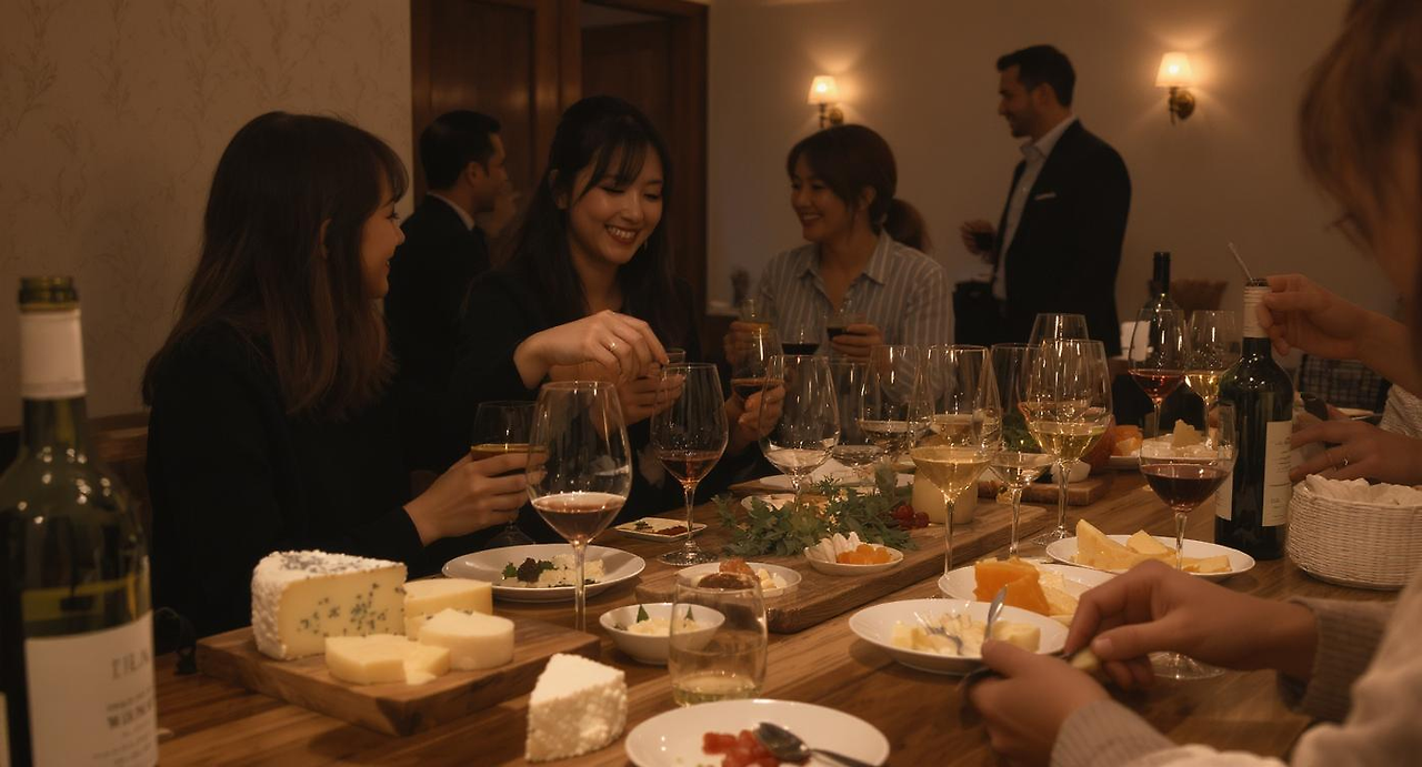 와인과 치즈 테이스팅 파티는 친구, 가족, 동료들과 함께하는 사회적 활동으로 인기가 높습니다. 각자 좋아하는 와인과 치즈를 가져와 공유하거나, 특정 테마(지역, 품종 등)에 맞춘 테이스팅을 진행하며 대화를 나누는 시간은 인간관계를 깊게 하는 데 도움이 됩니다. 이러한 모임은 단순한 음식 소비를 넘어 지식 공유와 경험 교환의 장이 되어 참가자들에게 풍요로운 경험을 선사합니다.