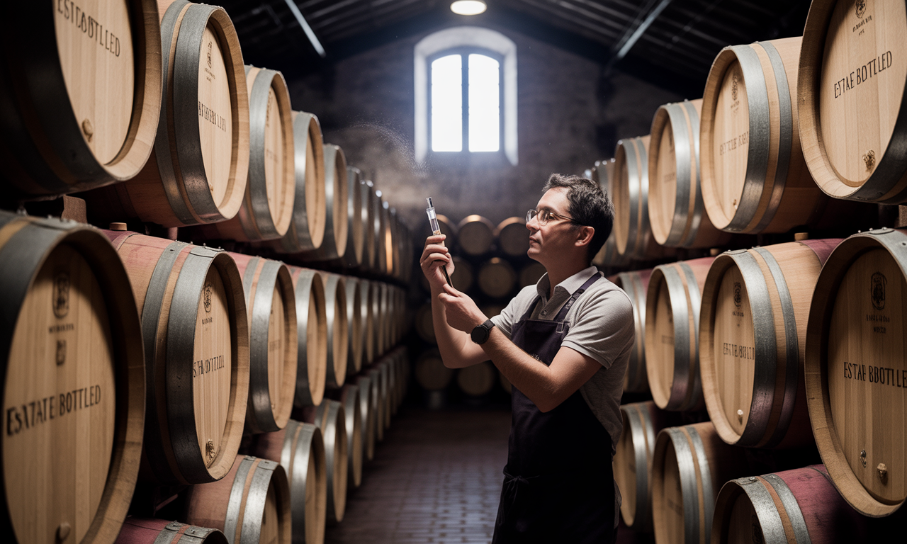 발효가 완료된 와인은 오크통이나 스테인리스 탱크에서 숙성됩니다. 특히 고급 레드 와인은 새 오크통에서 12-24개월 숙성시켜 복합적인 향과 부드러운 탄닌을 발전시킵니다. 숙성이 끝난 와인은 병에 담겨 추가로 숙성되거나 시장에 출시됩니다.