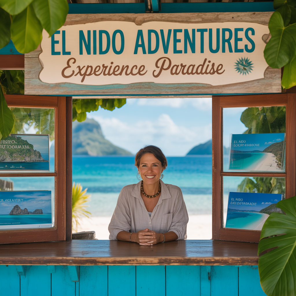 엘니도 타운의 메인 스트리트에는 다양한 투어 에이전시가 있어 현지에서 직접 예약도 가능합니다. 가격 비교와 협상이 가능한 장점이 있습니다.