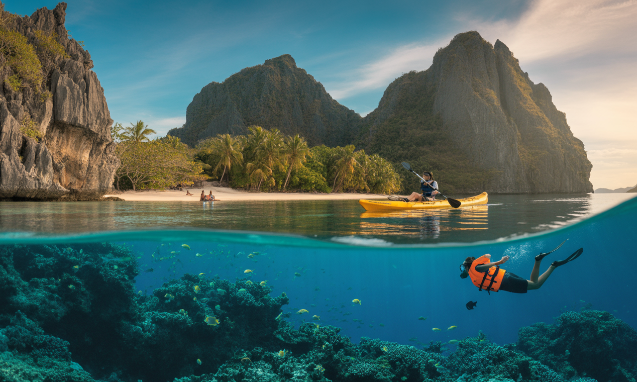 엘니도의 맑은 바닷물에서 형형색색의 열대어들과 건강한 산호초를 관찰할 수 있는 최고의 경험입니다. 초보자도 쉽게 참여할 수 있도록 안전 교육과 장비 사용법을 친절히 안내해드립니다.