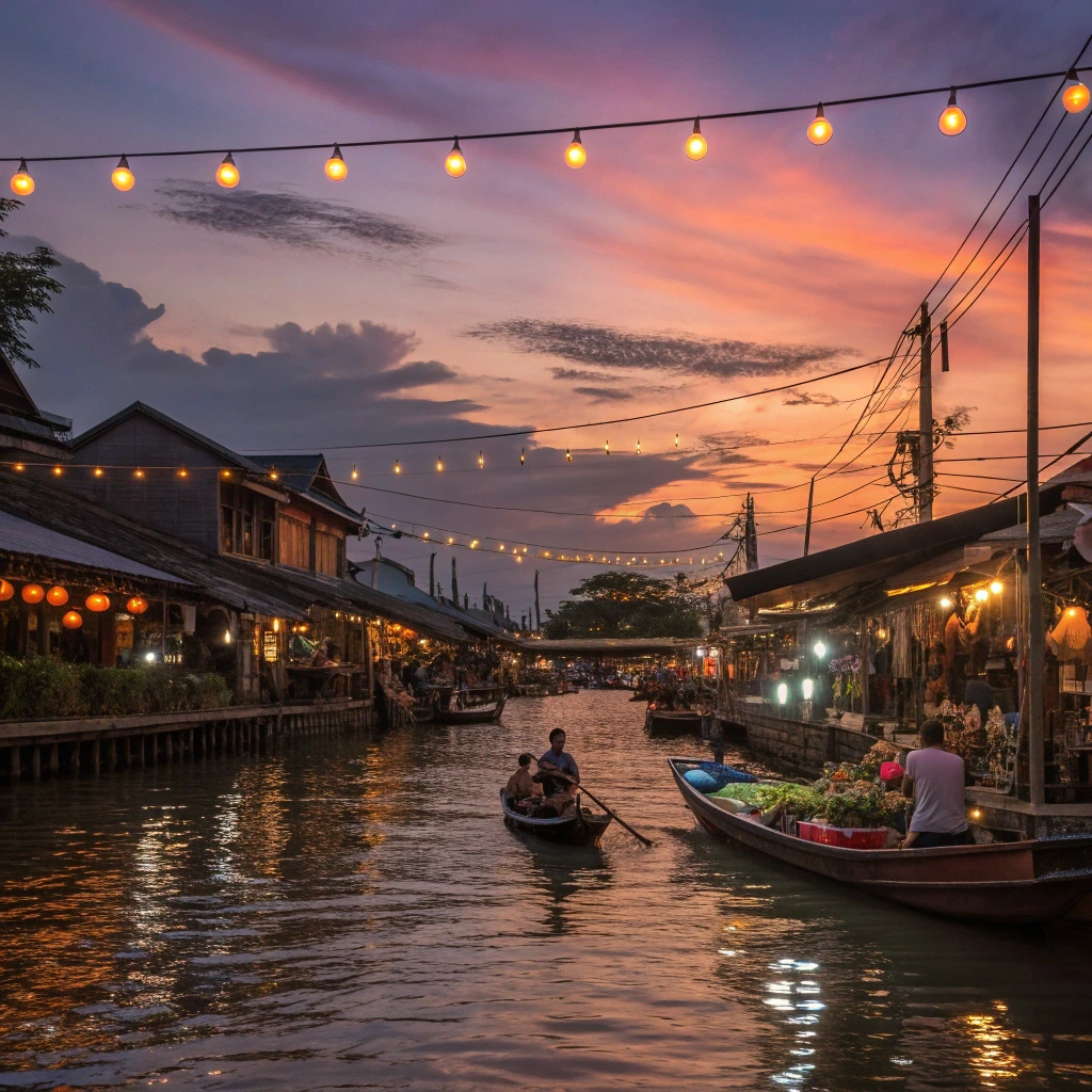 태국 전통 수상시장은 강과 운하를 따라 배 위에서 물건을 사고파는 독특한 시장 문화입니다. 19세기부터 시작된 태국의 생활 방식과 교역의 중심지로, 오늘날에도 현지인들의 삶이 생생하게 이어지고 있습니다.