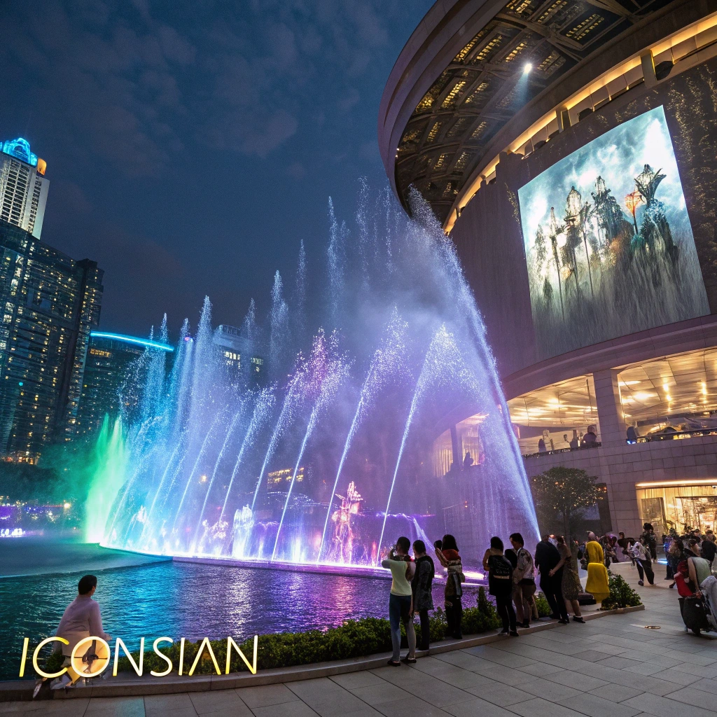 아이콘시암의 또 다른 볼거리는 6층 식당가 중앙에 위치한 대형 실내 폭포 '헤리티지(Heritage)'입니다. 이 폭포는 높이 약 40미터에 달하며, 첨단 LED 조명 시스템과 결합되어 시시각각 변화하는 물의 패턴과 화려한 조명 쇼를 선보입니다. 낮 시간에는 잔잔하게 흐르는 폭포수가 평화로운 분위기를 연출하고, 저녁 시간에는 음악과 함께 역동적인 라이트 쇼가 펼쳐집니다.