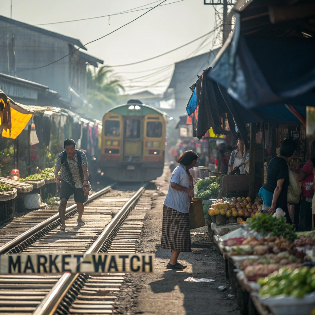 메클롱 기차시장 상인들은 기차가 지나갈 때마다 완벽한 팀워크를 보여줍니다. 이웃과의 신호 체계, 물건 배치의 과학, 순발력 있는 움직임은 오랜 세월의 산물입니다.