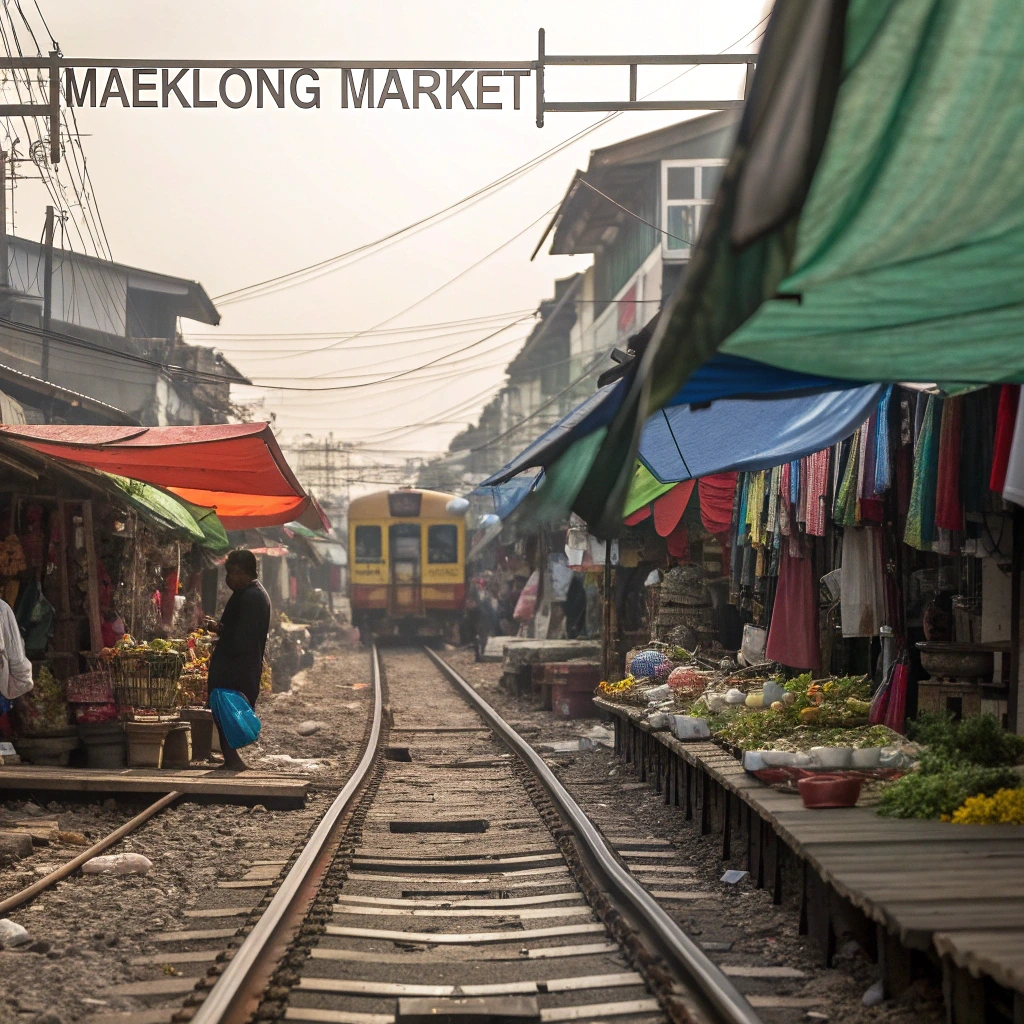 사뭇송크람 주에 위치한 메클롱 기차시장은 세계에서 가장 독특한 시장 중 하나로 손꼽힙니다. 방콕에서 차로 약 1시간 30분 거리에 있는 이곳은 실제 운행 중인 기찻길 위에 형성된 시장으로, 그 자체로 놀라운 광경입니다.