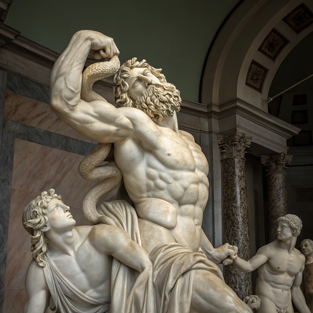 - 라오콘 군상: 트로이 전쟁의 비극을 극적으로 표현한 걸작. 뱀에 감긴 라오콘과 그의 아들들의 고통스러운 표정이 생생함
