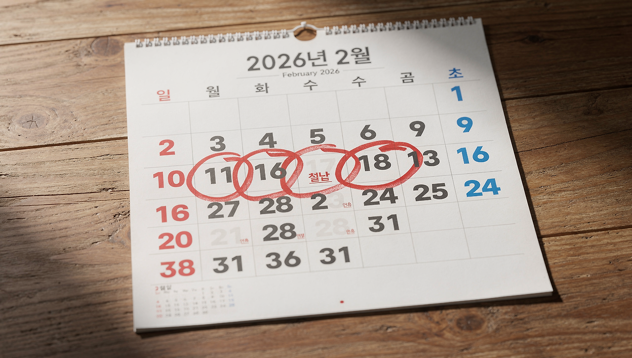 이번 설 연휴는 단순히 쉬는 시간이 아니라, 2026년 한 해를 준비하는 소중한 재충전의 기회입니다. 가족과 함께 전통을 지키며 즐거운 추억을 만들고, 충분한 휴식을 통해 새로운 한 해를 힘차게 시작하시기 바랍니다.
