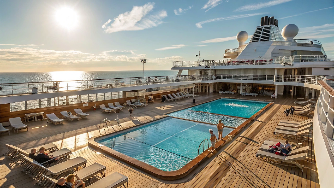 대부분의 크루즈선은 다수의 수영장, 자쿠지, 성인 전용 풀 데크, 어린이 워터파크 등을 갖추고 있습니다. 로얄 캐리비안의 '퍼펙트 데이 앳 코코케이'와 같은 프라이빗 아일랜드에는 대규모 워터파크도 운영되고 있습니다. 최신 선박들은 서핑 시뮬레이터, 워터 슬라이드 복합단지, 인피니티 풀 등 혁신적인 수상 시설을 도입하고 있습니다.