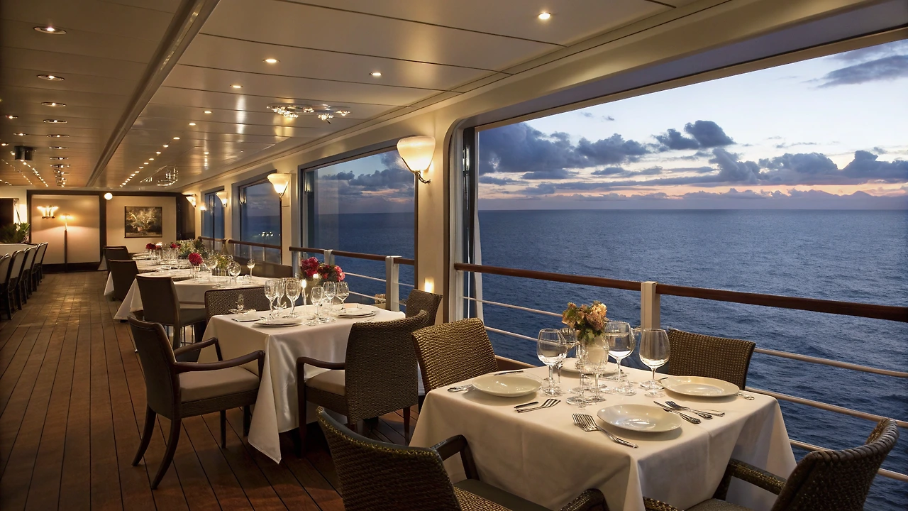 현대 크루즈선은 기본 다이닝룸부터 전문 셰프가 운영하는 특별 레스토랑까지 다양한 식사 옵션을 제공합니다. 대부분의 크루즈에는 24시간 뷔페, 메인 다이닝룸, 풀사이드 그릴, 피자 코너 등의 기본 식사 옵션이 크루즈 요금에 포함되어 있습니다. 추가 비용을 지불하는 스페셜티 레스토랑으로는 스테이크하우스, 이탈리안, 아시안, 시푸드 레스토랑 등이 있으며, 셀러브리티 크루즈의 '르 쁘띠 셰프 다이닝'과 같은 특별한 경험을 제공하는 레스토랑도 있습니다.