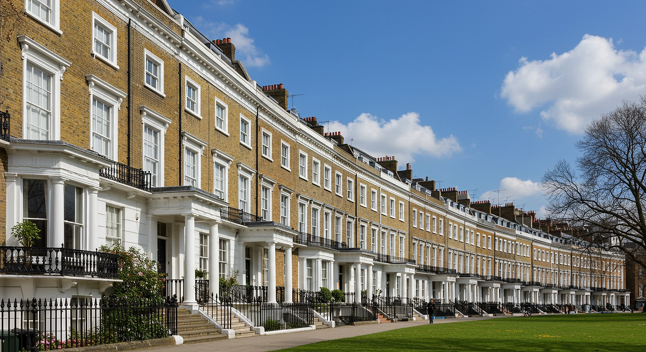 조지아 시대의 가장 주목할 만한 건축적 혁신 중 하나는 테라스 하우스(terraced house)의 등장이었습니다. 이 연립 주택들은 동일한 파사드를 가진 연속된 주택들로, 효율적인 도시 공간 활용을 가능하게 했습니다. 전형적인 조지아 스타일 테라스 하우스는 붉은 벽돌 또는 석회암으로 지어졌으며, 대칭적인 창문 배열, 팔라디안 스타일의 출입구, 검은색 철제 난간이 특징이었습니다. 이러한 주택들은 종종 정원 광장(garden square) 주변에 배치되어 거주자들에게 공공 녹지 공간을 제공했습니다.
