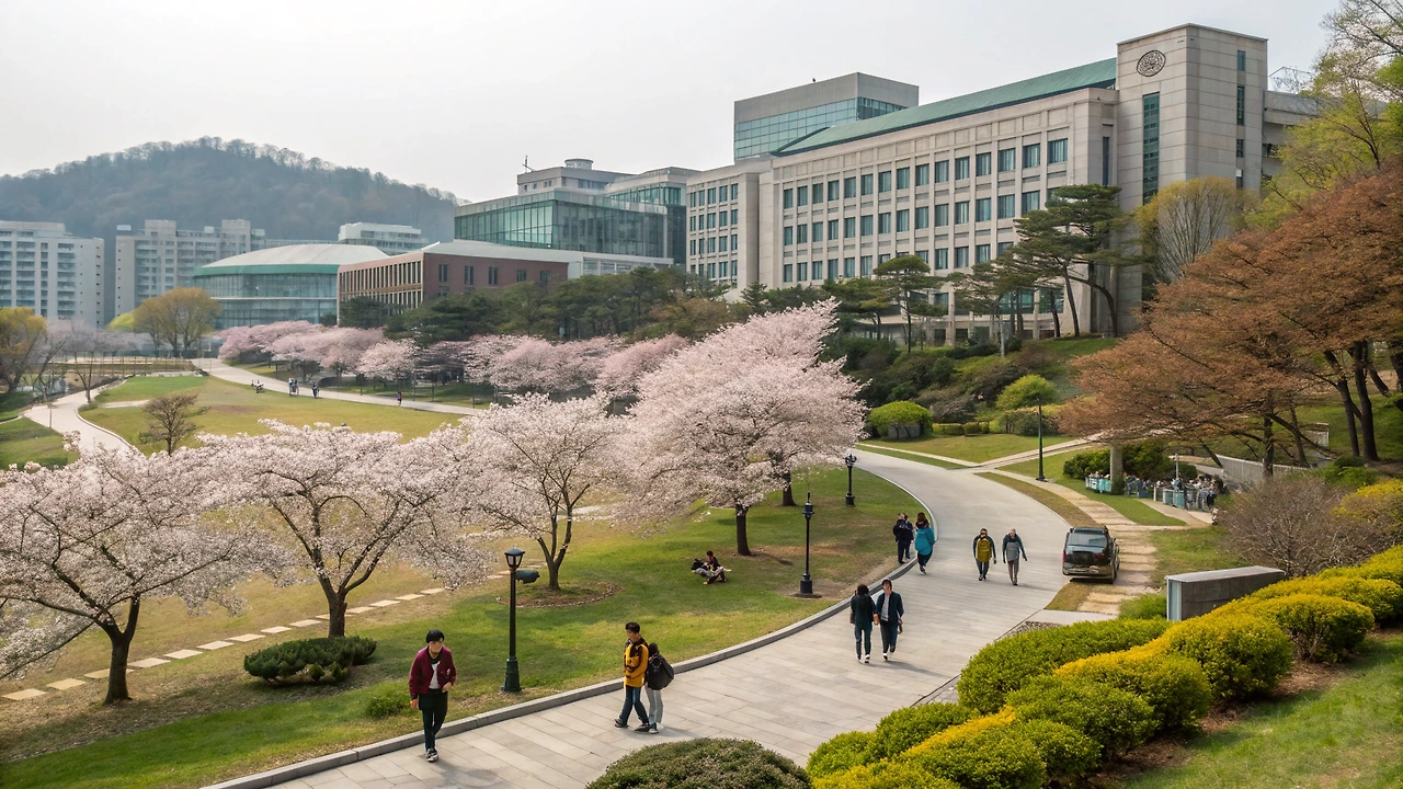 서울대학교 관악캠퍼스는 봄철 벚꽃으로 유명하며, 웅장한 중앙도서관과 잔디광장이 캠퍼스의 중심을 이루고 있습니다. 4계절의 아름다운 자연환경 속에서 학생들이 학업에 매진하고 있습니다.